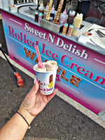 Made with our signature Vanilla Ice Cream mix, you can choose from a wide range of flavours from a fruit option such as Fresh Strawberry to your favourite chocolate or biscuit to add in which is then mixed together and rolled up when frozen into beautiful Ice cream rolls!